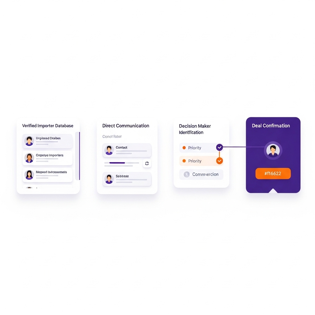 في النهاية، الهدف مش بس إنك تظهر على النت، الهدف إنك تجيب عملاء حقيقيين وتعمل صفقات. احنا بنجمعلك قاعدة بيانات شاملة للمستوردين المحتملين في الأسواق المستهدفة، مع معلومات الاتصال الكاملة (إيميلات، تليفونات، عناوين). مش بس كدة، كمان بنساعدك في التواصل الأولي معاهم وإرسال عروضك. النتيجة: توفر وقت ومجهود كبير، وتوصل مباشرة لصناع القرار اللي ممكن يبقوا عملاءك الدائمين.