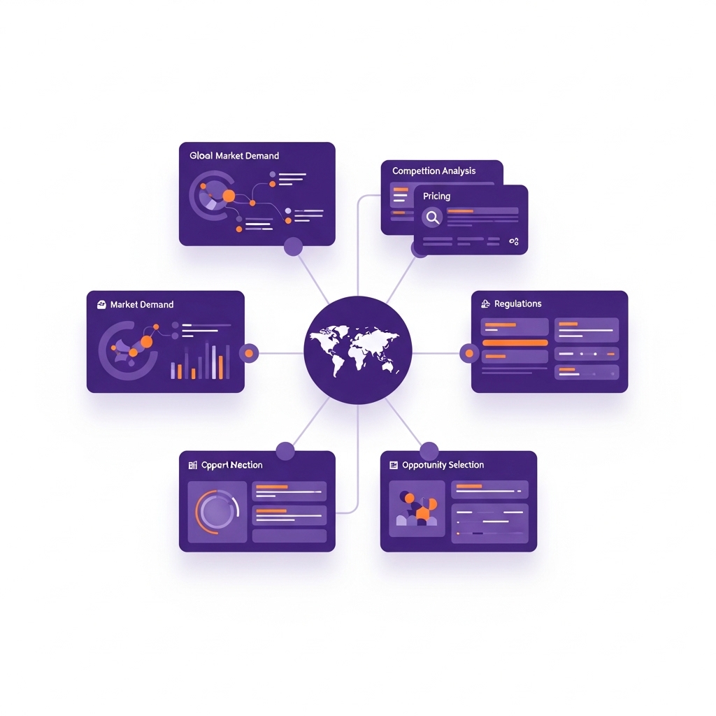 مش كل سوق هيكون مناسب لمنتجك. ودة اللي بيخلي كتير من المصانع تخسر فلوس ووقت في أسواق غلط. احنا بندرسلك الأسواق المختلفة بأدوات إضافية زي Trade Map ونحللك حجم الطلب والمنافسة والأسعار والقوانين المطلوبة. بعد كدة بنقولك بالظبط أنهي سوق الأنسب ليك وإزاي تدخله صح من أول مرة. وده يوفر عليك سنين من التجربة والخطأ.
